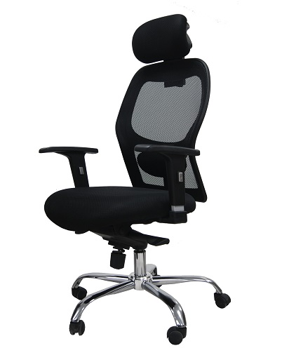 Executive Mesh Chair, Mesh Back and Upholstered Seat in Fabric, with Headrest, PU Padded Height Adjustable Armrest, Synchronic Mechanism, Chrome Base, PU Casters